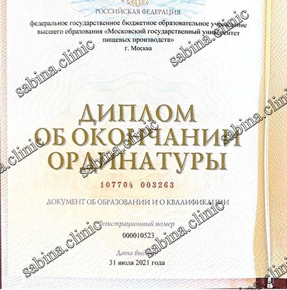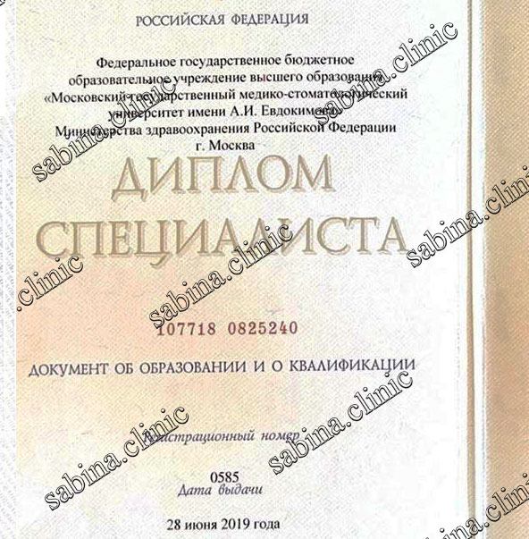 В 2019 году Сабина Тофиковна получила диплом врача, окончив лечебный факультет МГМСУ имени А.И. Евдокимова в Москве. За ее плечами две клинических ординатуры: