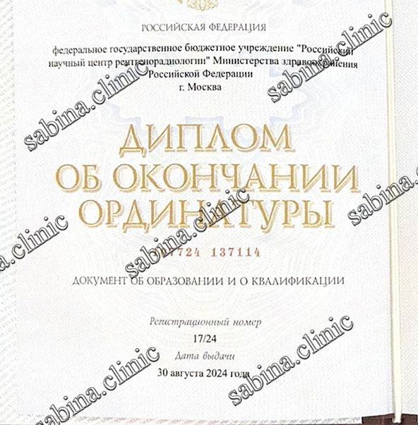 - В 2022–2024 гг — по онкологии на базе ФГБУ «Российский научный центр рентгенорадиологии Минздрава России».